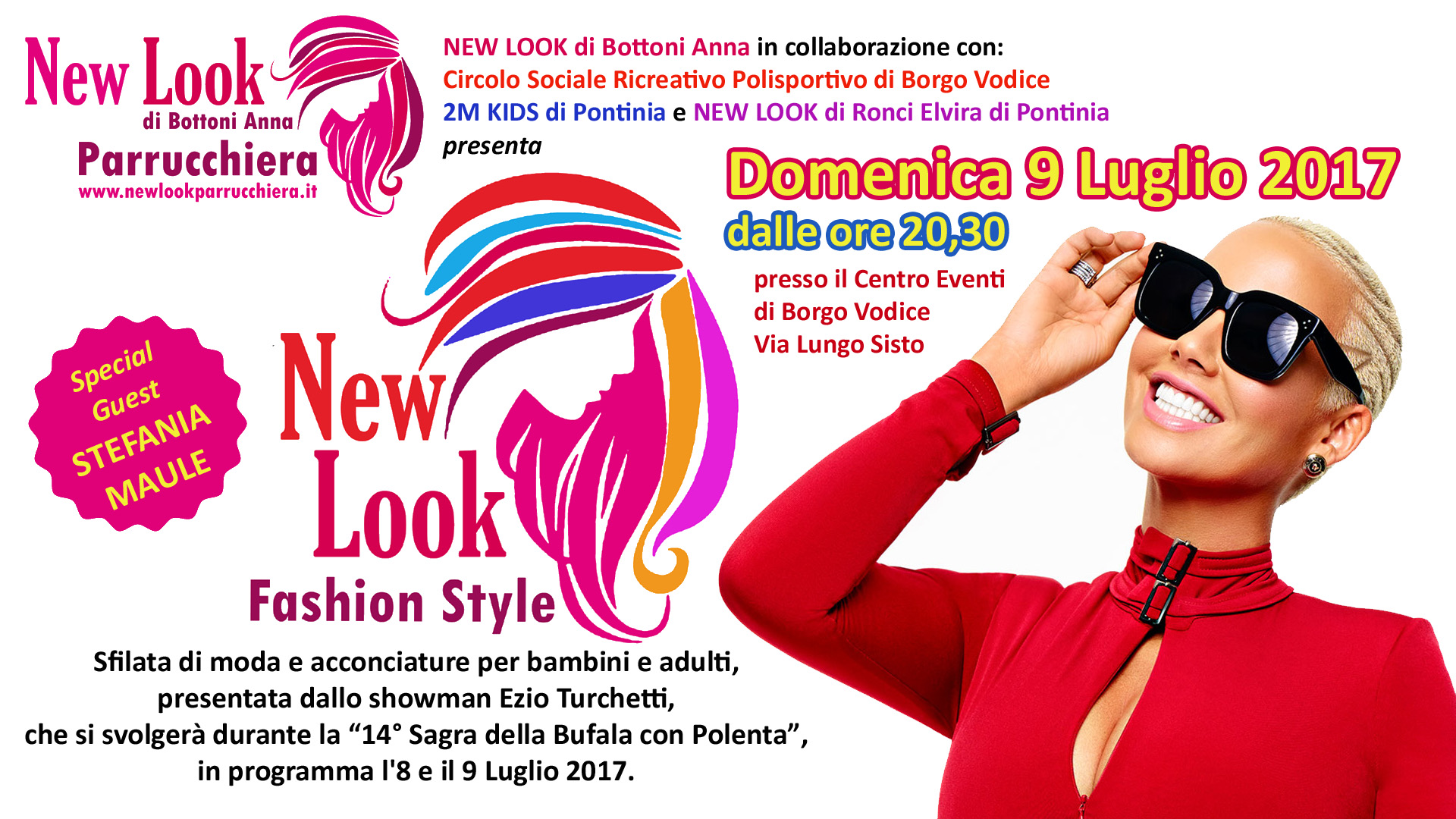 Finalmente, dopo un anno di forzata pausa, dovuta alla mia gravidanza, torno a proporre un Evento legato alla mia attivita’ di Parrucchiera. Domenica 9 Luglio 2017, presso il Centro Eventi di Borgo Vodice (LT), dalle ore 20,30 alle 21,30 ci sarà una Sfilata di Moda e Acconciature per bambini e adulti. La kermesse, denominata «New Look Fashion Style», sarà presentata dallo showman Ezio Turchetti, già presentatore di «Miss New Look 2015», e si svolgerà in concomitanza con la «14° Sagra della Bufala con Polenta», in programma già dal giorno precedente. La Sagra, organizzata dal Circolo Sociale Ricreativo Polisportivo di Borgo Vodice, si svolge come ogni anno presso il Centro Eventi di Borgo Vodice, un luogo di svago e divertimento per adulti e bambini. Ad aprire la passerella sarà la modella Stefania Maule di Aprilia, già da me premiata come «Miss New Look 2014» nel corso di «Un Volto per il Cinema 2014». L’Evento, grazie ad un accordo con la televisione locale SL48, sarà ripreso e prossimamente trasmesso in differita, oltre che in tale Canale (91 del Digitale Terrestre), anche su Viva L’Italia Channel e Babel TV.