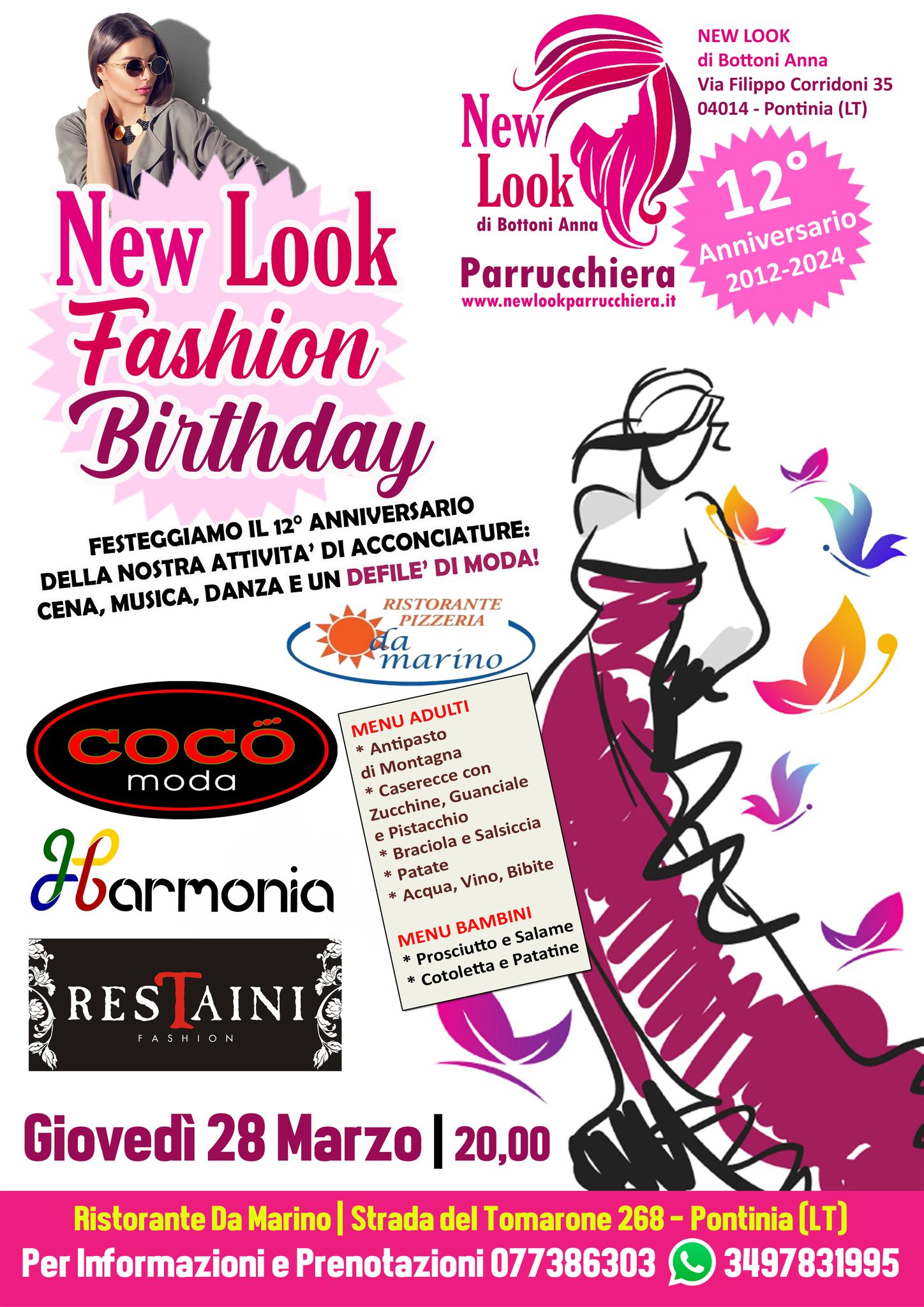 Quest’anno la mia attività raggiunge il traguardo dei 12 anni di vita, che ricorrono, come sempre, a fine Marzo. Pertanto, l’occasione mi è gradita per presentare una grande serata di festa, denominata per l’occasione «New Look Fashion Birthday», che si terrà presso il Ristorante Da Marino (sito in Strada del Tomarone 268 a Pontinia), il prossimo Giovedì 28 Marzo, a partire dalle ore 20,00. Era infatti il 25 Marzo 2012 quando inaugurai il Salone e il successivo 27 aprii per la prima volta al pubblico. In realtà questa festa sarebbe stata programmata per i 10 anni di attività, traguardo importante corrispondente alla cifra tonda, ma nel 2022 ci portavamo ancora appresso gli strascichi e le cicatrici derivanti dal famigerato periodo Covid, aggravato dalla fresca scomparsa di mio suocero, avvenuta in Febbraio. Quindi, abbiamo pensato di rimandare, giocoforza, a tempi migliori, giunti appunto oggi. Mentre ceneremo (è previsto un Menù adulti con Antipasto di Montagna, Caserecce con Zucchine, Guanciale e Pistacchio, Braciola con Salsiccia e Patate, e anche uno per i bambini) avremo modo di assistere ad uno speciale Defilèe di Moda, grazie alla partecipazione dalle nostre clienti più “intraprendenti”, con abiti forniti da "Cocò Moda", storica attività di abbigliamento del centro di Pontinia, e di “Restaini Fashion”, quest’ultima nata a Priverno ma che ha poco aperto un Punto Vendita anche a Borgo Pasubio, nel piccolo Centro Commerciale in cui si trova anche “Acqua & Sapone”. Sono previsti anche degli intermezzi di danza, curati dalla A.S.D. Harmonia di Sabaudia. Presenta la Giornalista Maria Corsetti, con musica a cura di Giorgio Sarra. Siete tutte invitate, insieme alle vostre famiglie, invito da estendere anche ai vostri amici: per prenotare potete chiamare al nostro Salone allo 077386303 oppure direttamente il 3497831995 (anche Whats’App). Vi aspetto numerose per celebrare degnamente e in allegria la mia attività!